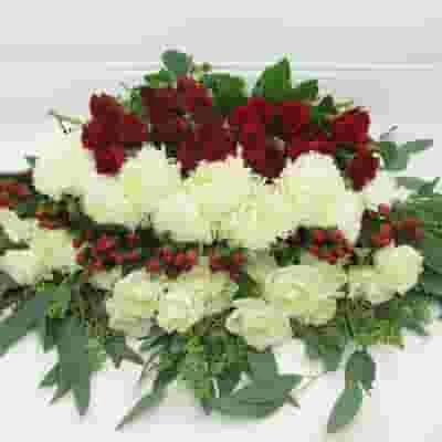 Blooms DIY Holiday Pack contains: 25 stems of roses, 10 stems of spray roses, 10 stems of football mums, 10 stems of hypericum berries, and approx. 10-16 stems of seeded eucalyptus.