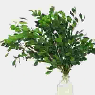 Get back to nature in your floral arrangements with the addition of Coffee Foliage. This gorgeous filler green features woody, branched stems with dark green foliage. Each branch is covered in oval-shaped, glossy green leaves on alternating sides. This leafy filler has the common name of Orange Jessamine because this plant smells of sweet oranges.