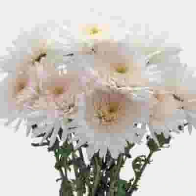 Mums are reminiscent of fall, so they’re the perfect choice for an autumn wedding. Our Cremon mums, with their bright white petals and lightly shaded pink and yellow centers, work well for any season and are a wonderful alternative to dahlias. The large blooms measure between 3 and 4 inches across and feature soft outer petals surrounding a deep pin-cushion center. They add plenty of texture to any bouquet and, thanks to their long stems, they also make beautiful centerpieces. Cremons are incredibly easy to work with and if properly hydrated, they can have a vase life of a week or more. They’re an affordable choice for the DIY bride who’s on a budget and Blooms by the Box offers a bulk discount when you order eight or more bunches. Cremon Mum White Flowers are also known as Chrysanthemums.