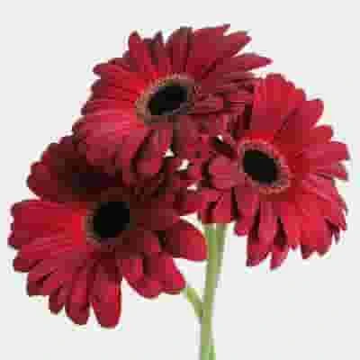 Please Note: There can be a lot of variation in the color of burgundy Gerbera Daisies. These are not specific varieties of Gerbera daisies. Petal color and center color will vary per bunch.