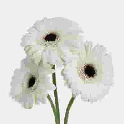 Please Note: There can be a lot of variation in the color of white Gerbera Daisies. These are not specific varieties of Gerbera daisies. Petal color and center color will vary per bunch.