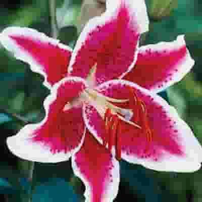 it’s no wonder the Starfighter lily is one of our most popular lilies. Belonging to the genus Lilium, the Starfighter is a hybrid Oriental lily and is considered to be a part of a group of “true lilies.” Strong stems support upward-facing, 6-inch wide blooms that have reddish-purple petals accented with a thick white border and dark red freckling. The edges are subtly ruffled and the blooms have an almost wax-like finish. They truly are one of the “stars” of the floral world. Each sturdy stem features two to three blooms to help you fill a large vase easily to create showy centerpieces and arrangements.