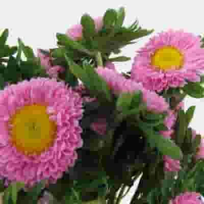 Are you looking for bright pops of color in your fresh-flower bouquet? Look no further than our wholesale Matsumoto pink aster flowers and bring your arrangement to life! The Matsumoto aster originates in Eastern Asia and features a spray of complicated, intricately individual tubular-shaped petals around a cheerful, sunny yellow center disc. Each flower is nestled within long, dark green leaves on a strong stem and adds a plump, healthy volume to any arrangement.