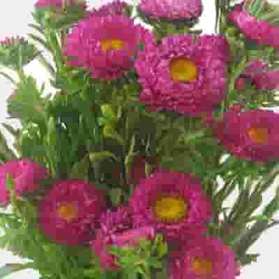 Add a playful pop of color to your bouquet with our wholesale hot pink Matsumoto asters and make your arrangement come to life! These cheerful flowers received their name from the Greek word for “star” and feature complex, tubular-shaped flowers that extend around a sunny, yellow round disc-like center. The rich, vivid color is a sassy variation of pink. The Matsumoto aster, which originated in Eastern Asia, is a reliable, sturdy flower that travels well and is nicely fragrant.