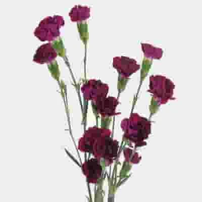 Cost-effective, long-lasting and impacting, purple mini carnation flowers make an attention-grabbing addition to your jewel-toned arrangements. Each multi-bloom spray has several textured, ruffled blossoms in deep purple to accent your small or large floral arrangements. The purple flower hue makes these blooms perfect for year-round designs. Pair them with some pine and white roses for your wintry centerpieces or accent them with sophisticated garden roses for your summer wedding bouquet. The possibilities are truly endless with these affordable mini purple carnations! We love mini carnations because they’re exceptionally long-lasting and affordable, so they can be used to fill out your larger arrangements in hanging installations and flower walls.
