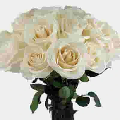 Our White Vendela rose bouquet is shaped with cream color roses which have large, cup-shaped heads and slightly curled petals! This favorite rose is both classic and modern and beautiful for all occasions! Perfect for weddings, special events, fundraisers and someone special! Each Bouquet includes Baby’s Breath, Leather Leaf Fern, flower food packet, and a floral sleeve.